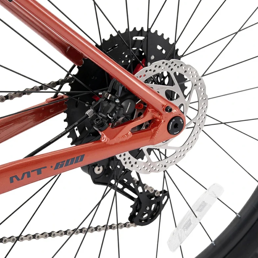 - Frenado Hidráulico Confiable: Los frenos Shimano MT200 garantizan una potencia de frenado modulable y segura, reduciendo la fatiga en las manos durante descensos prolongados.