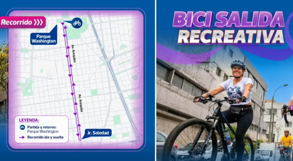 - Recorrido: Av. Arequipa hasta Jr. Soledad y retorno al Parque Washington (5 km aproximadamente)