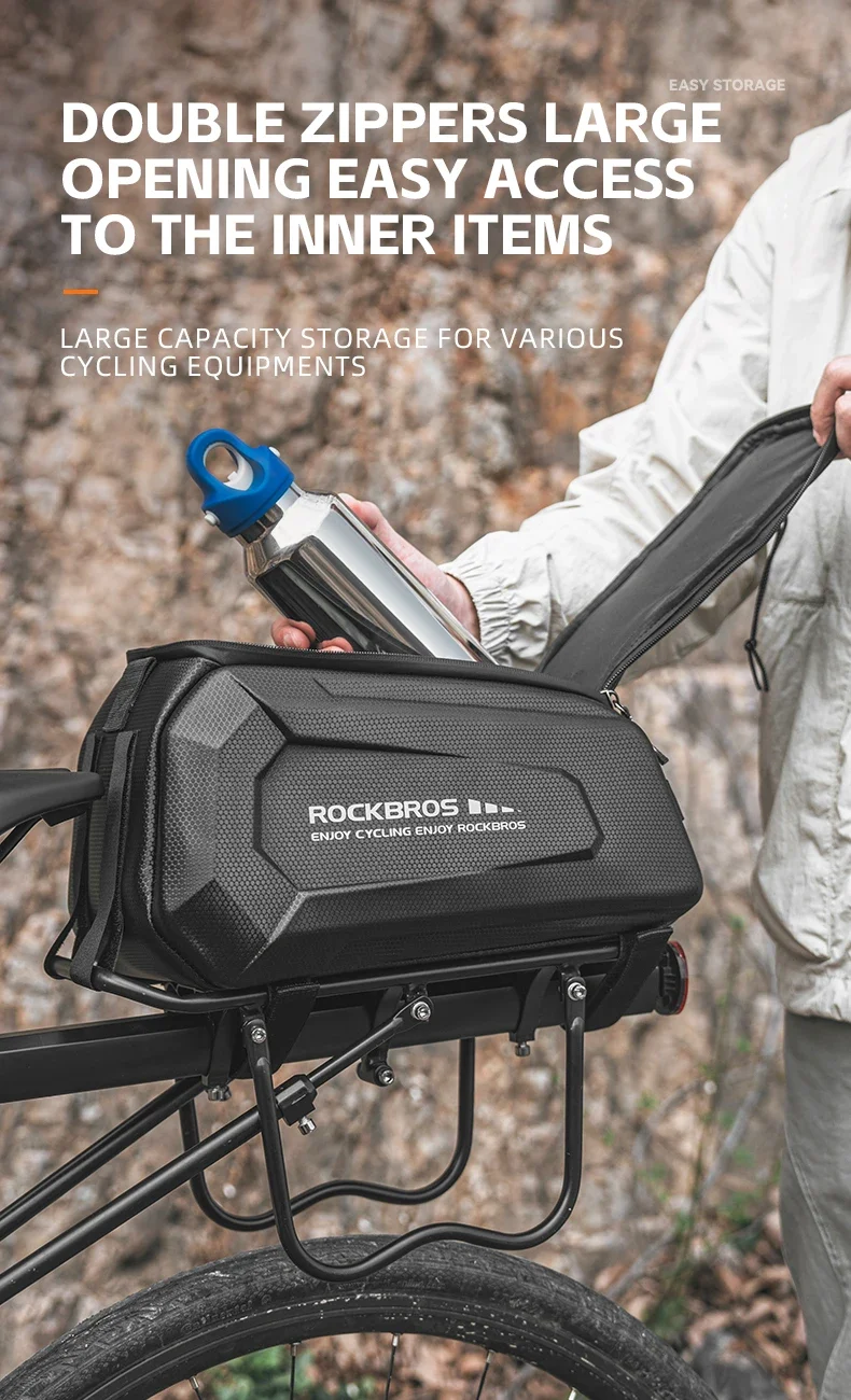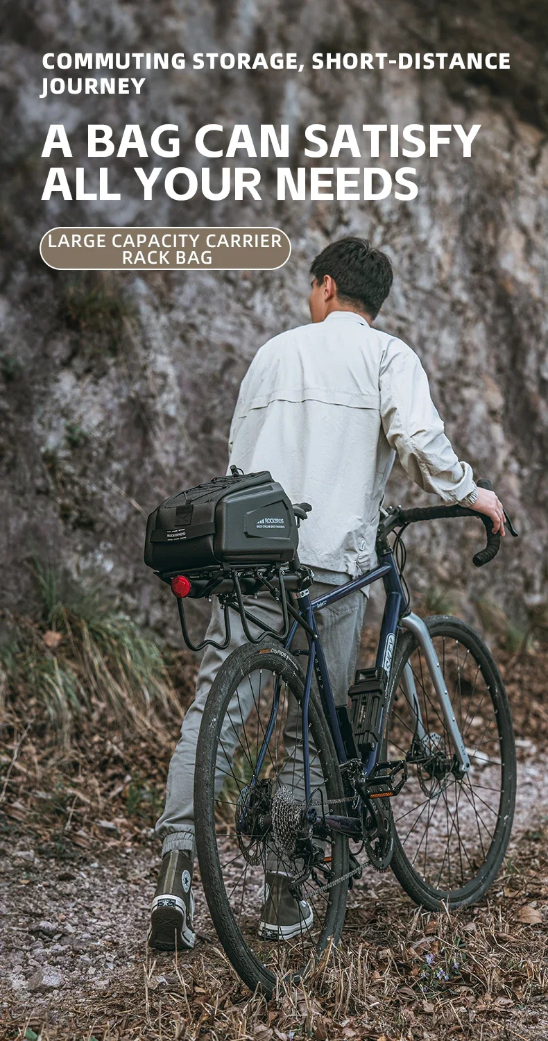 Bolso para parrilla A26 Rockbros con 9L de capacidad y material resistente. Ideal para llevar tus cosas seguras en cada ruta. Cómpralo ahora y pedalea con comodidad.