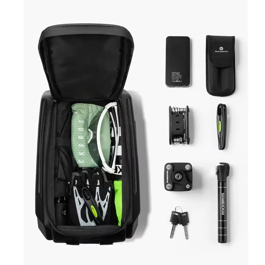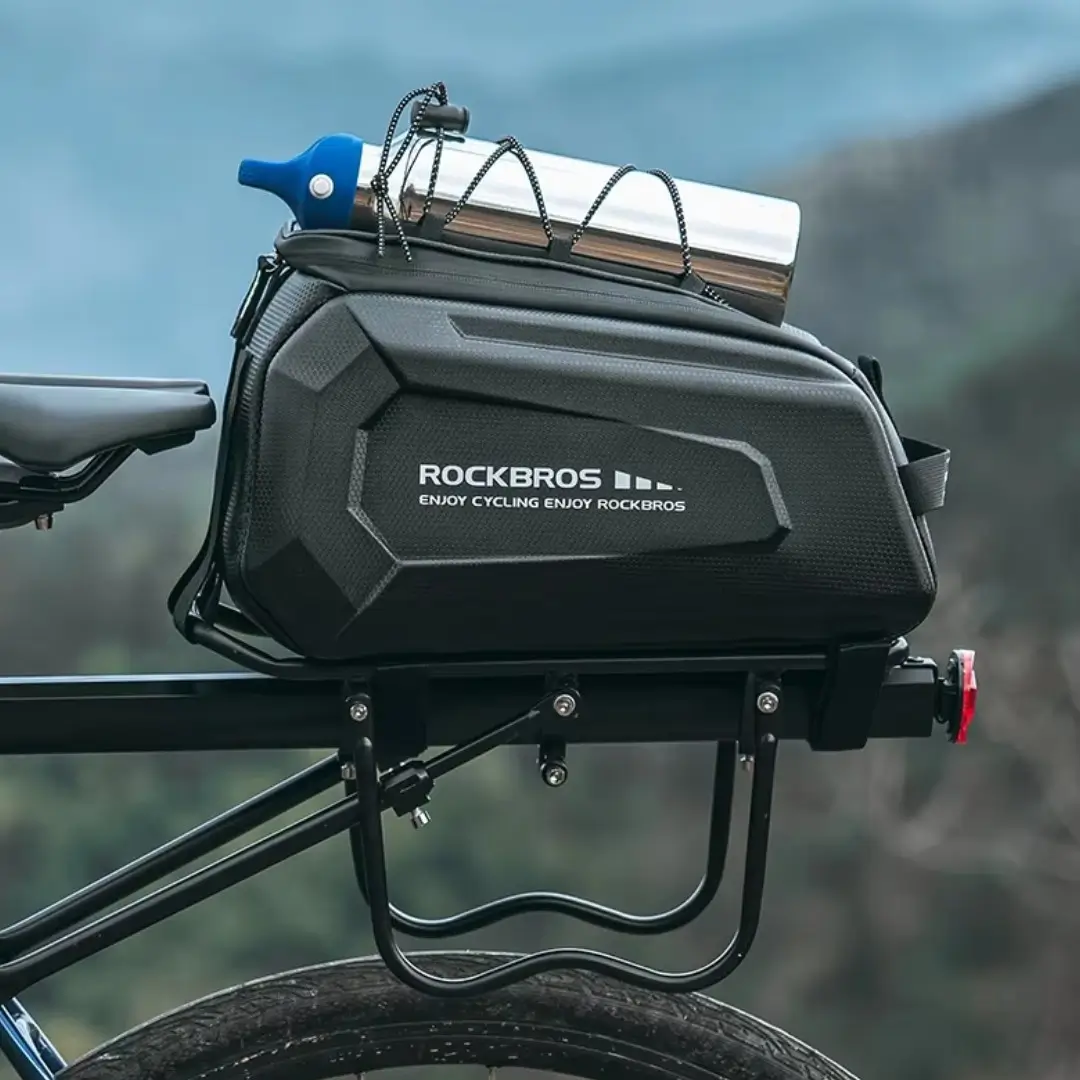Bolso para parrilla A26 Rockbros con 9L de capacidad y material resistente. Ideal para llevar tus cosas seguras en cada ruta. Cómpralo ahora y pedalea con comodidad.