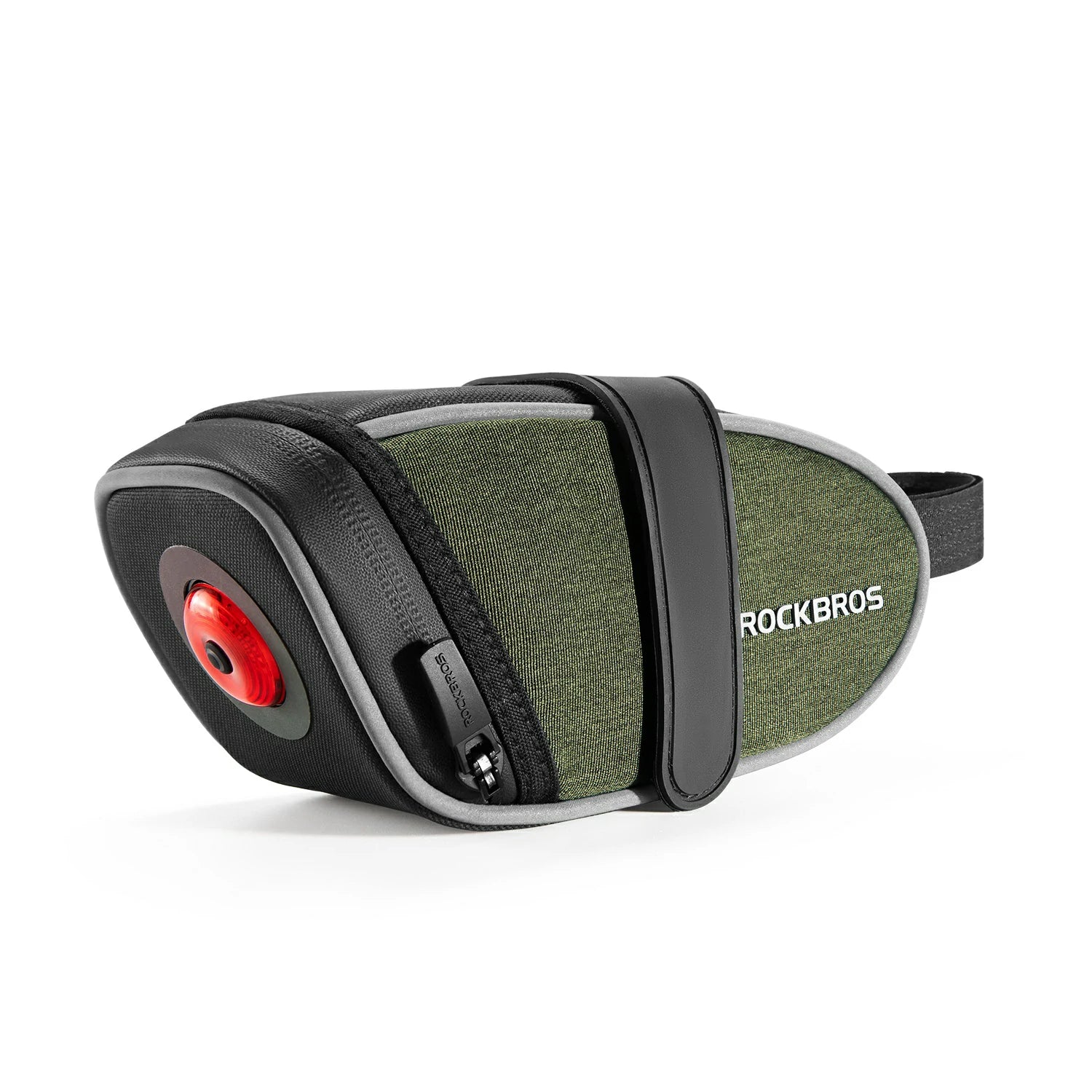El bolso de sillín Rockbros BPL8600 integra una luz trasera LED inteligente con sensor de vibración y frenado que se activa automáticamente para mayor seguridad nocturna. Combina almacenamiento funcional de 0.45L con iluminación avanzada en un diseño resistente al agua y de fácil instalación.