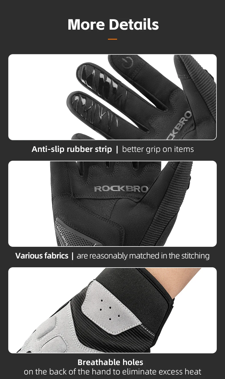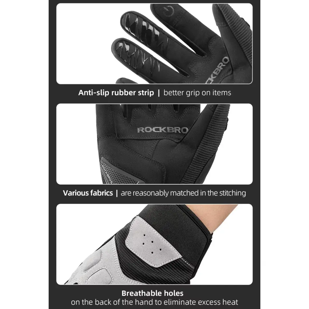 Guantes Rockbros de dedo completo que brindan agarre, protección y comodidad en cada pedaleo.¡Cómpralos ahora y pedalea con confianza!