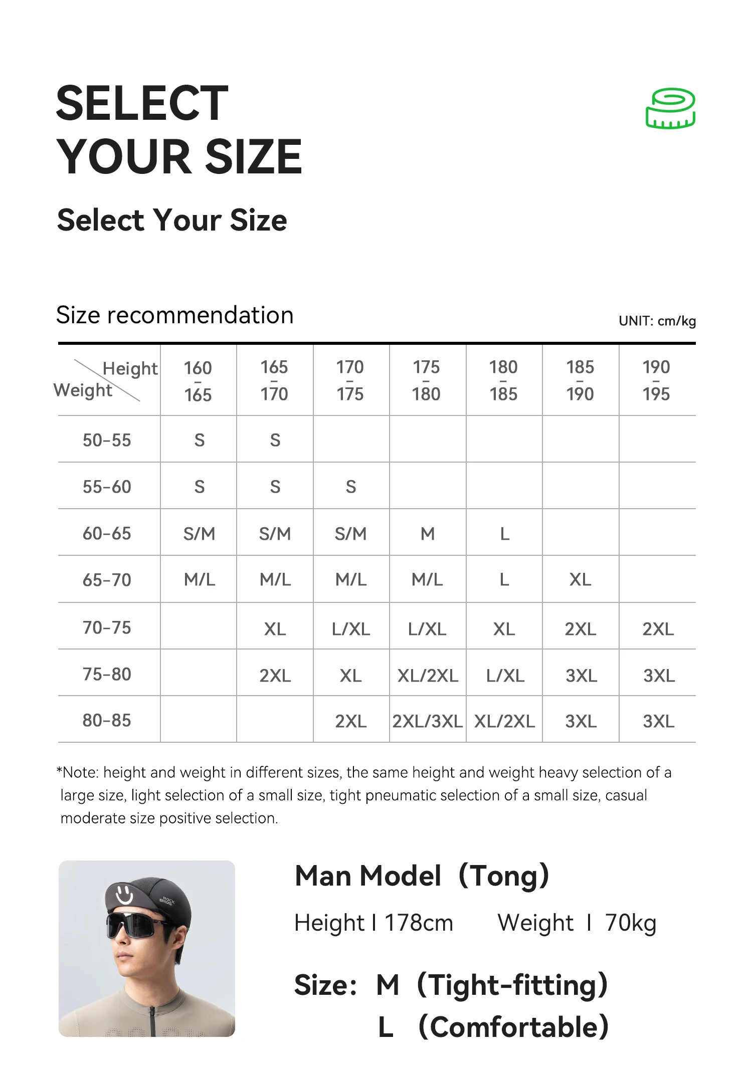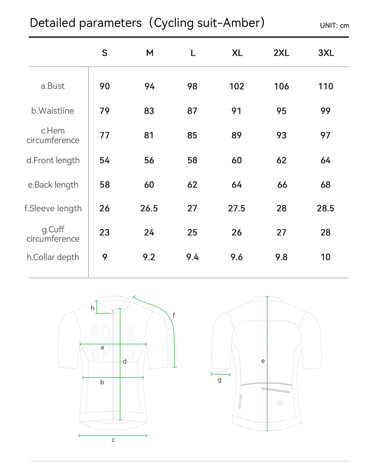 Guía de tallas para Jersey de Ciclismo para Hombre YDD25 Rockbros