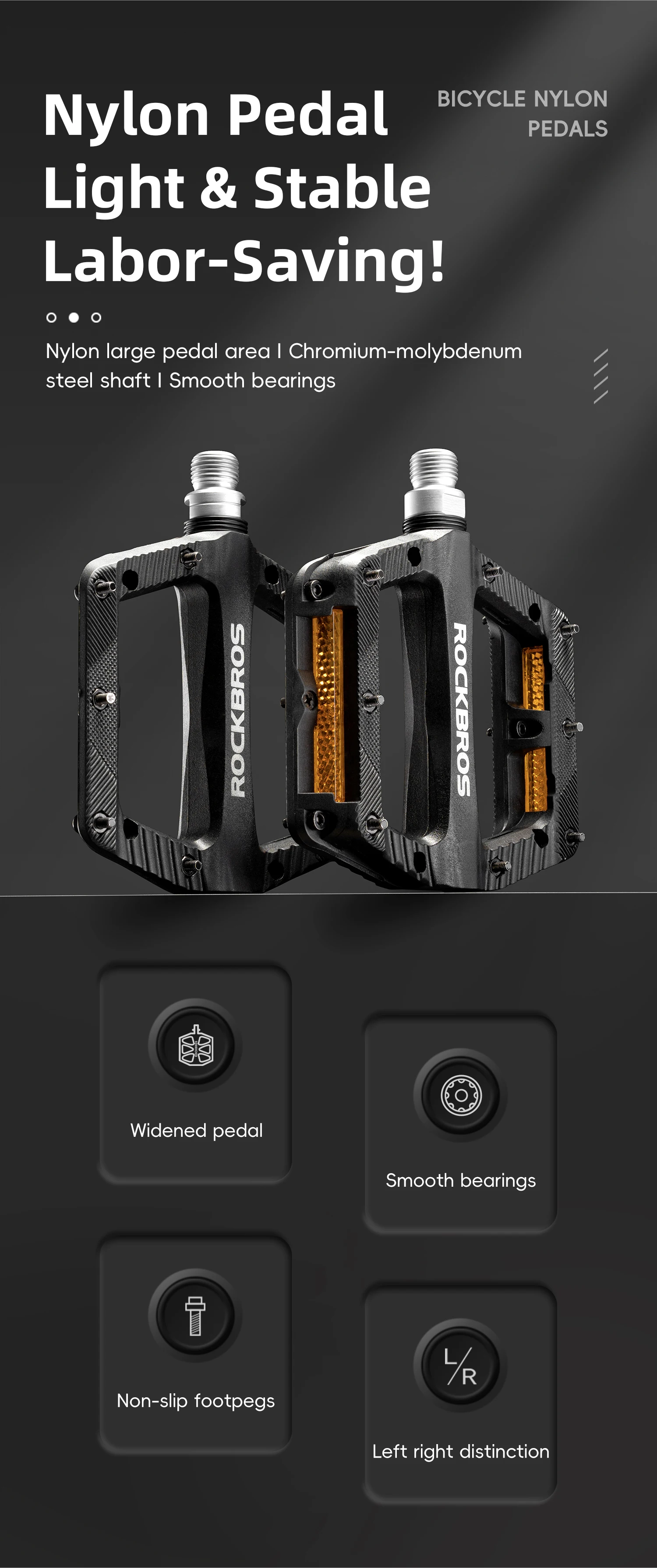 Disfruta un pedaleo más estable con los Pedales de Nylon 2014-P11 Rockbros. Ligeros, resistentes y antideslizantes. ¡Equipa tu bici y cómpralos hoy!