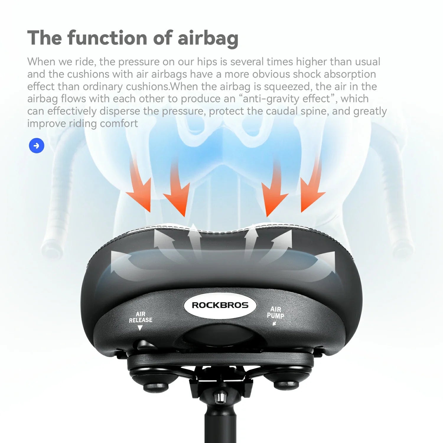 SILLÍN BICICLETA ANCHO CON CÁMARA DE AIRE AMORTIGUADOR ROCKBROS AQ-3200
