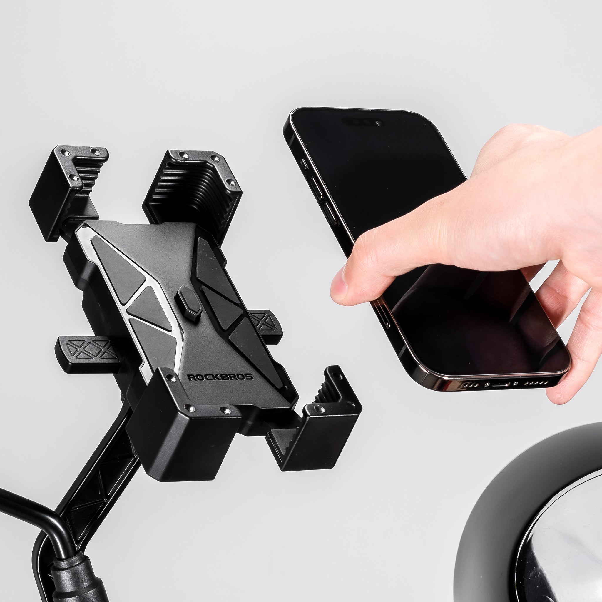 El soporte celular Rockbros BK2100 permite fijar y liberar tu smartphone con un solo toque. Equipado con resorte de alta resistencia y almohadillas de silicón, mantiene tu dispositivo seguro incluso en terrenos irregulares o frenadas bruscas. Ajuste de ángulo y rotación libres para adaptarse a cualquier posición de visualización.