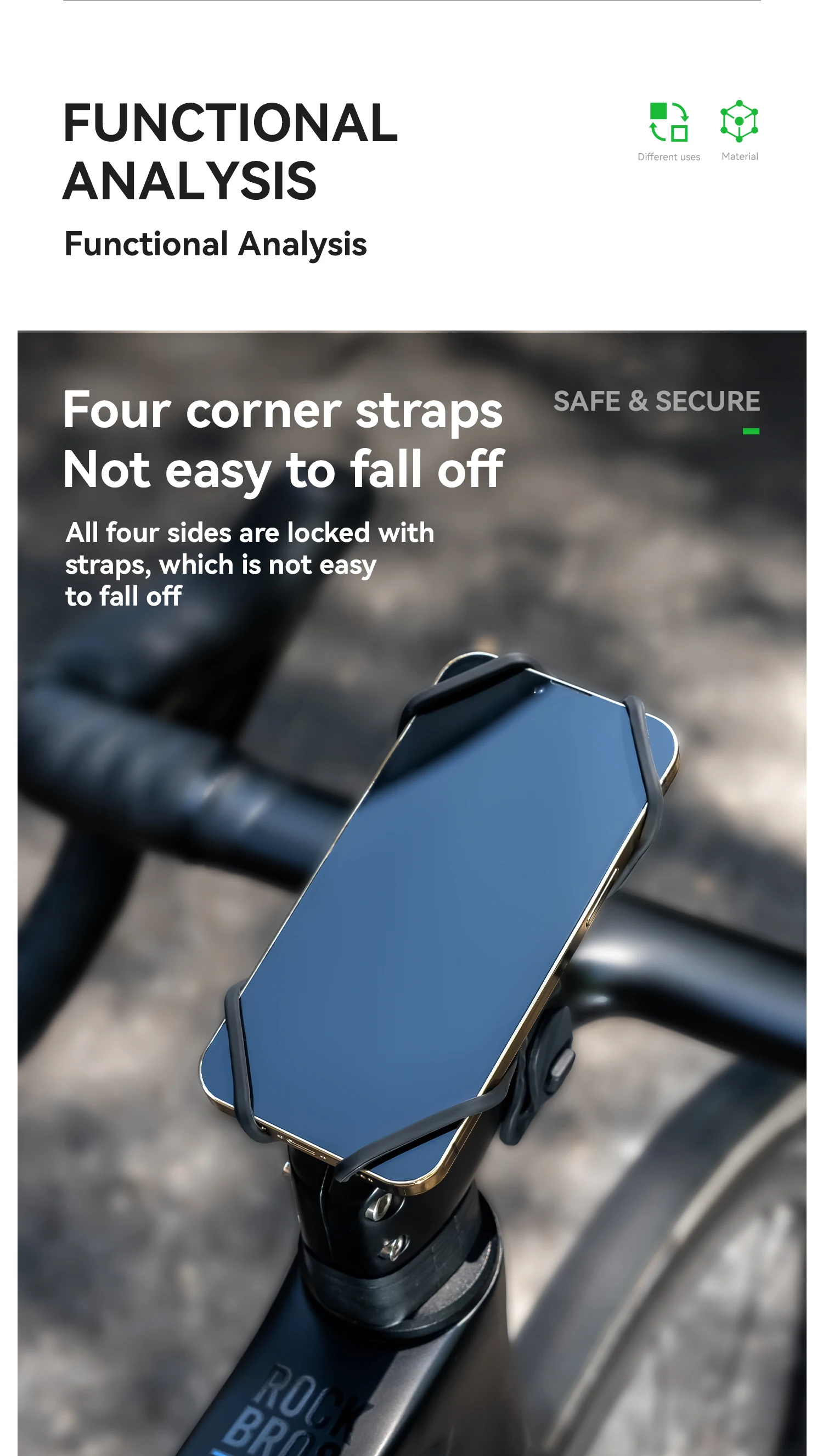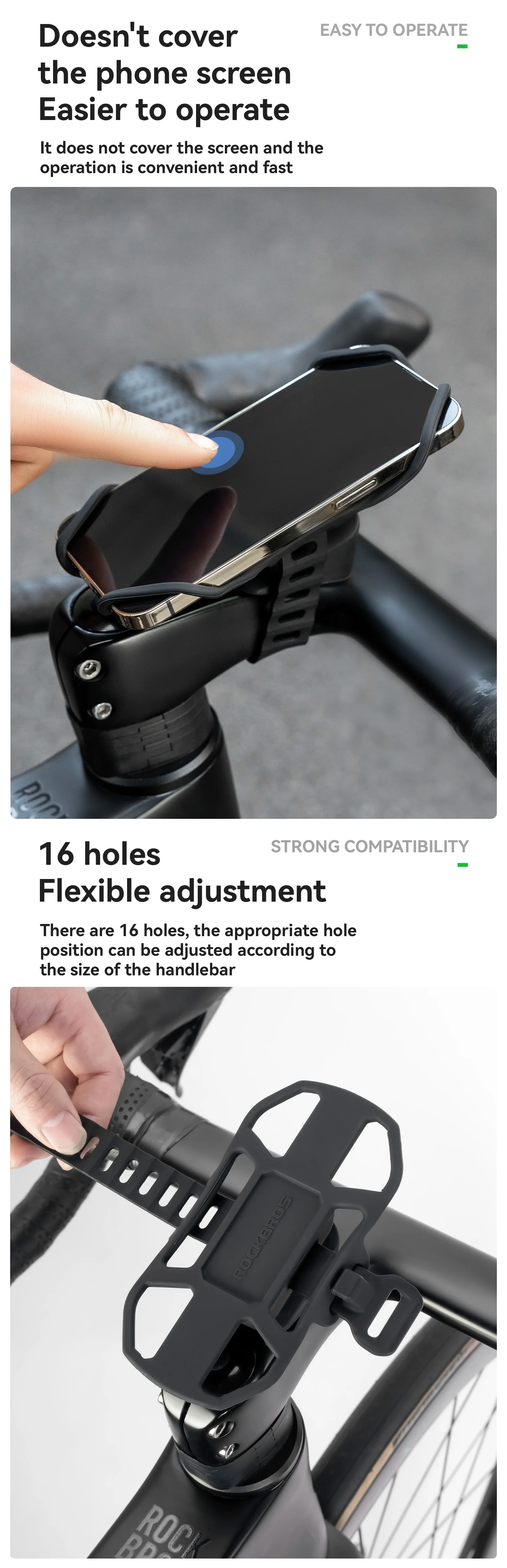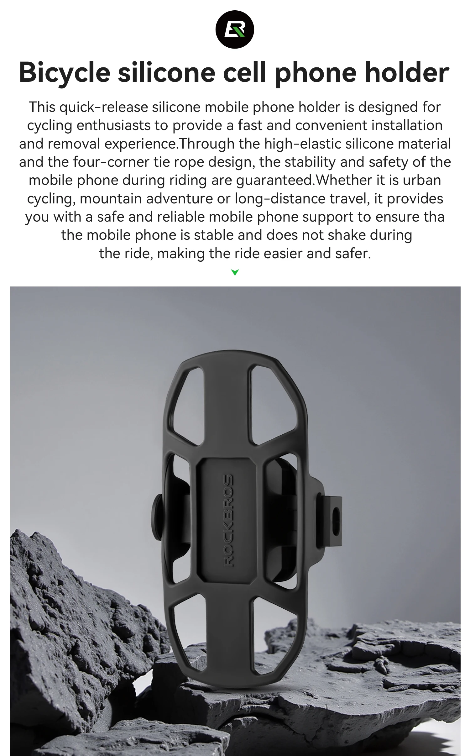Soporte de teléfono de silicona Rockbros: firme, ligero y fácil de usar. Mantén tu celular seguro en cada ruta. ¡Cómpralo ahora y pedalea conectado!